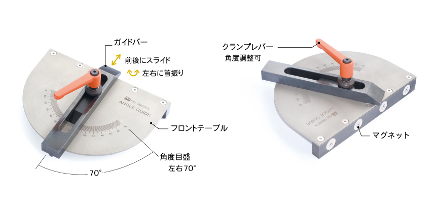 | 可変角度・精度 | 直角、左右70°・ 精度±0.3° |