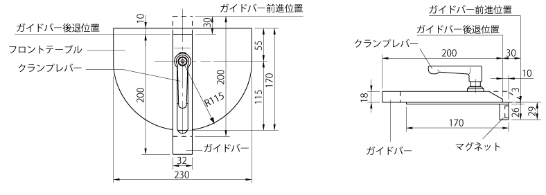 | フロントテーブル外径・材質 | 230W×170L ・ SUS304 |