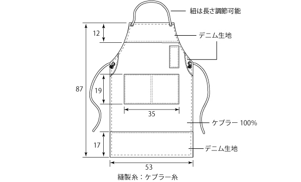 | 素材 | デニム生地(綿)、ケブラー100% |