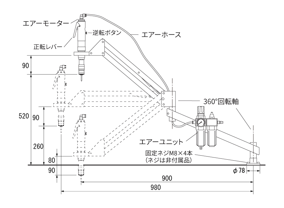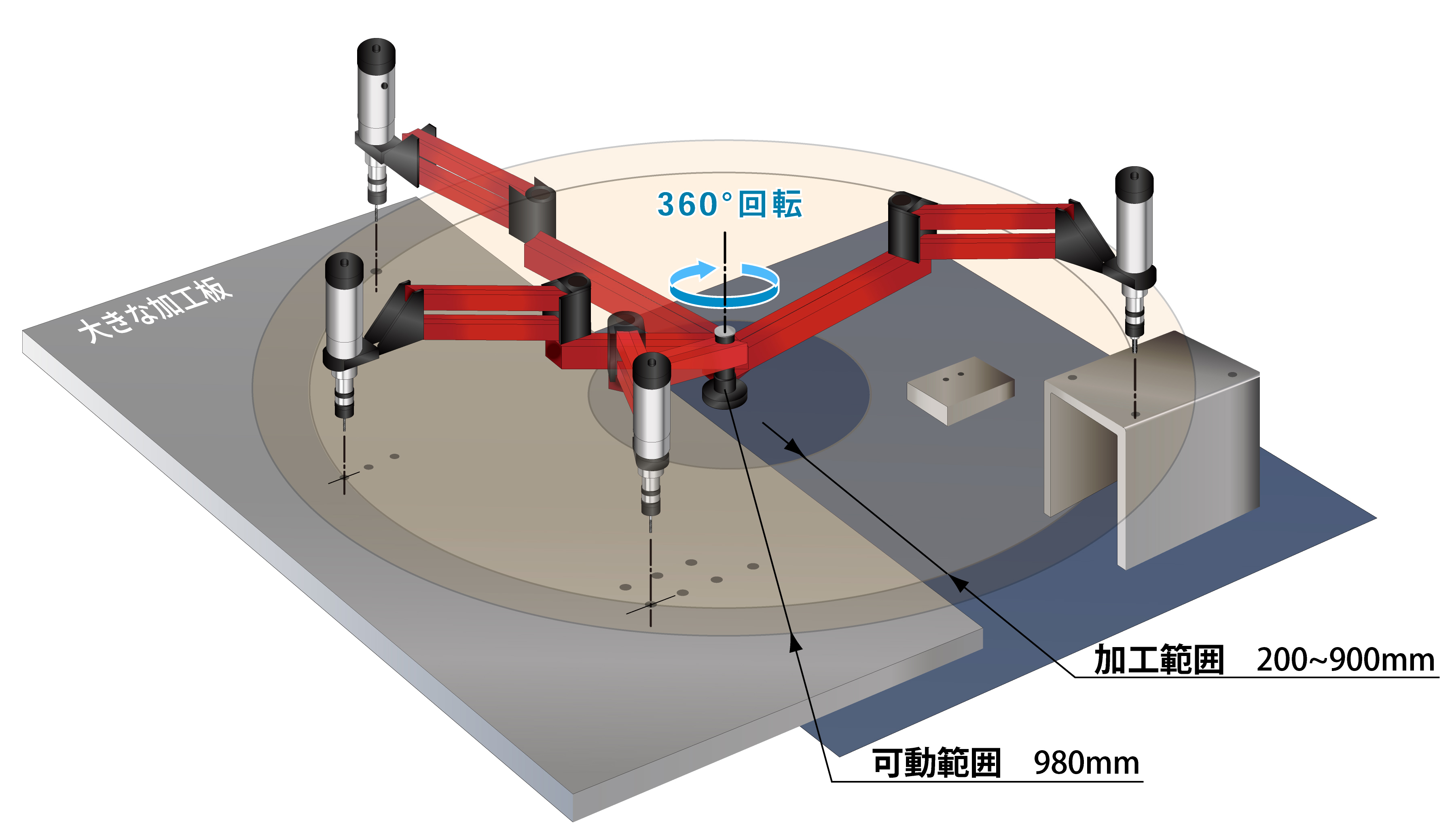 | 可動範囲 | 半径約90~980mm、上下480mm |