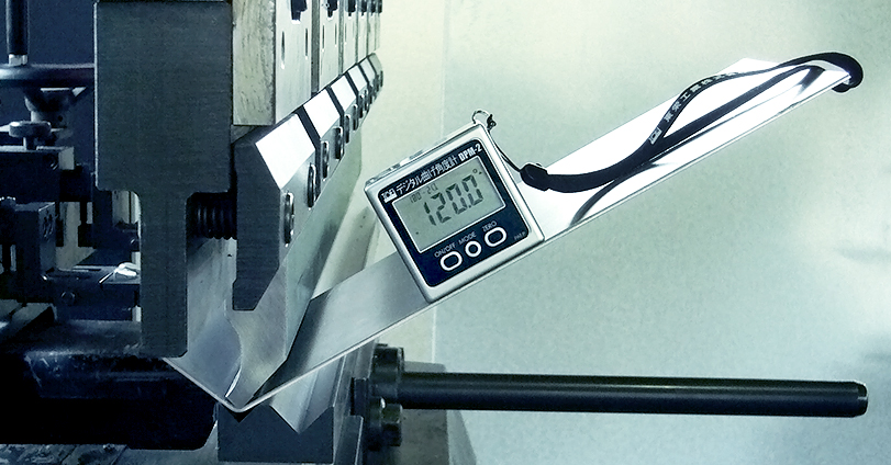 デジタル曲げ角度計は曲げ角度をリアルタイムで表示するため、めんどうな計算は不要。板を加工しながら角度の確認ができます。