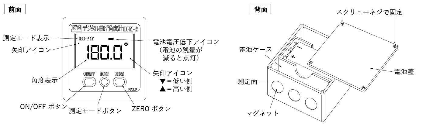 DPM-2は板金・製缶現場での使用に合わせ、精密・便利性・堅牢性を追求して開発された板金曲げに特化した角度計で、DPM-1やその他一般的なデジタル角度計とは内容がまったく異なるものです。