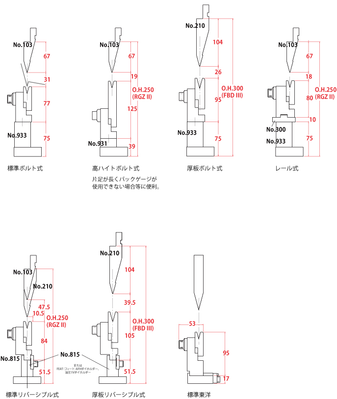 ※旧タイプの1VダイホルダーNo.080(L=1050mm)、No.081(L=1260mm)には取付不可